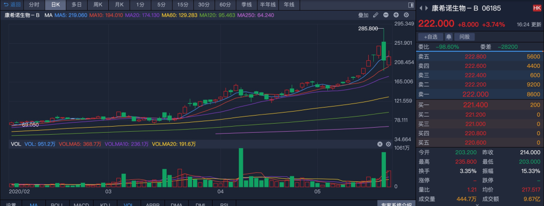此前,受牛津疫苗影响,康希诺21日上演暴跌,一度大跌20%。22日却大幅反弹3.74%。据了解,前述陈薇院士发表论文中提及的疫苗,是与康希诺公司联合开发的。