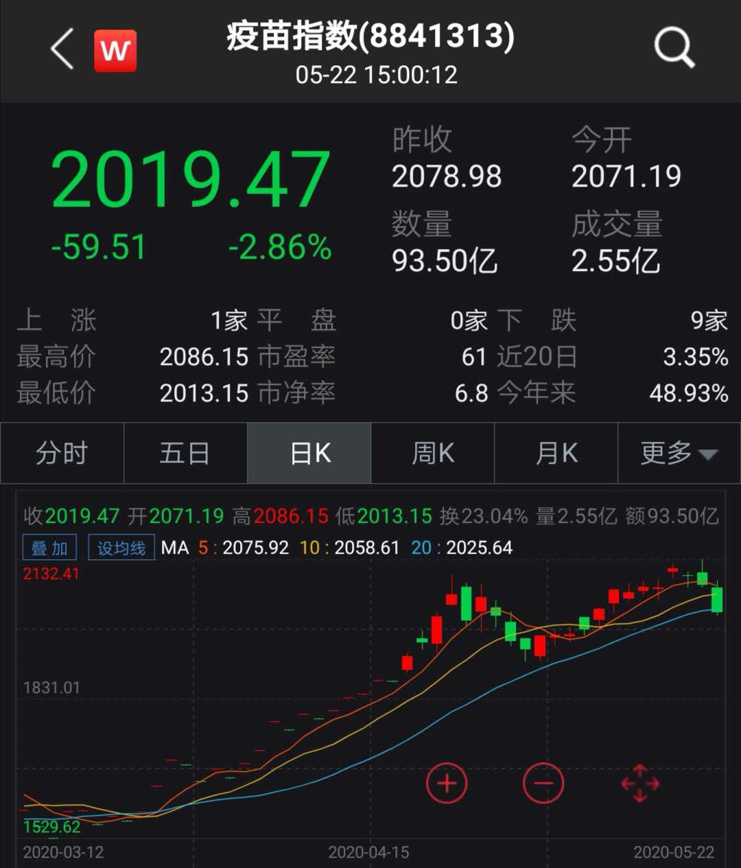 A股方面,Wind数据显示,5月以来疫苗指数持续上升,截至22日该指数上涨5%,近日开始出现调整。