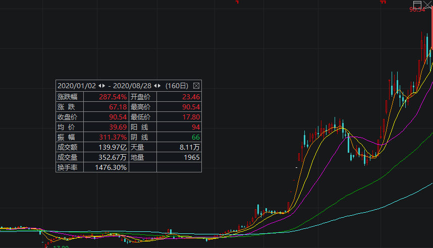今年以来,乐歌股份的股价一路飙涨,截至8月28日收盘,已经创下历史新高,报90.54元/股,年内的涨幅近300%。