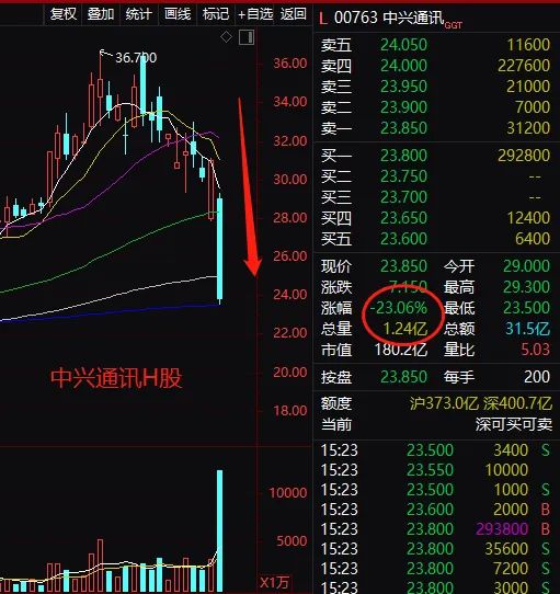 中兴通讯H股更是暴跌逾20%(15:23)。
