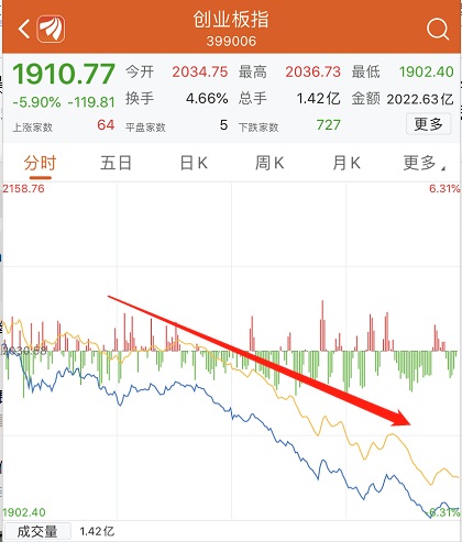 A股市场再度暴跌:创业板跌近6%