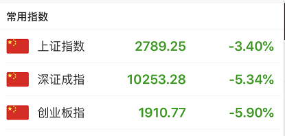 今日收盘,A股三大股指全面下挫,上证指数下跌3.4%失守2800点,深证成指跌5.34%,创业板指数暴跌5.9%,两市成交额9633亿元。