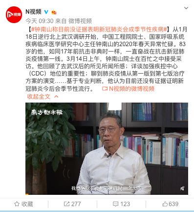 新冠肺炎可能每年冬春季就出现?钟南山称,目前没证据表明新冠肺炎会成季节性疾病!