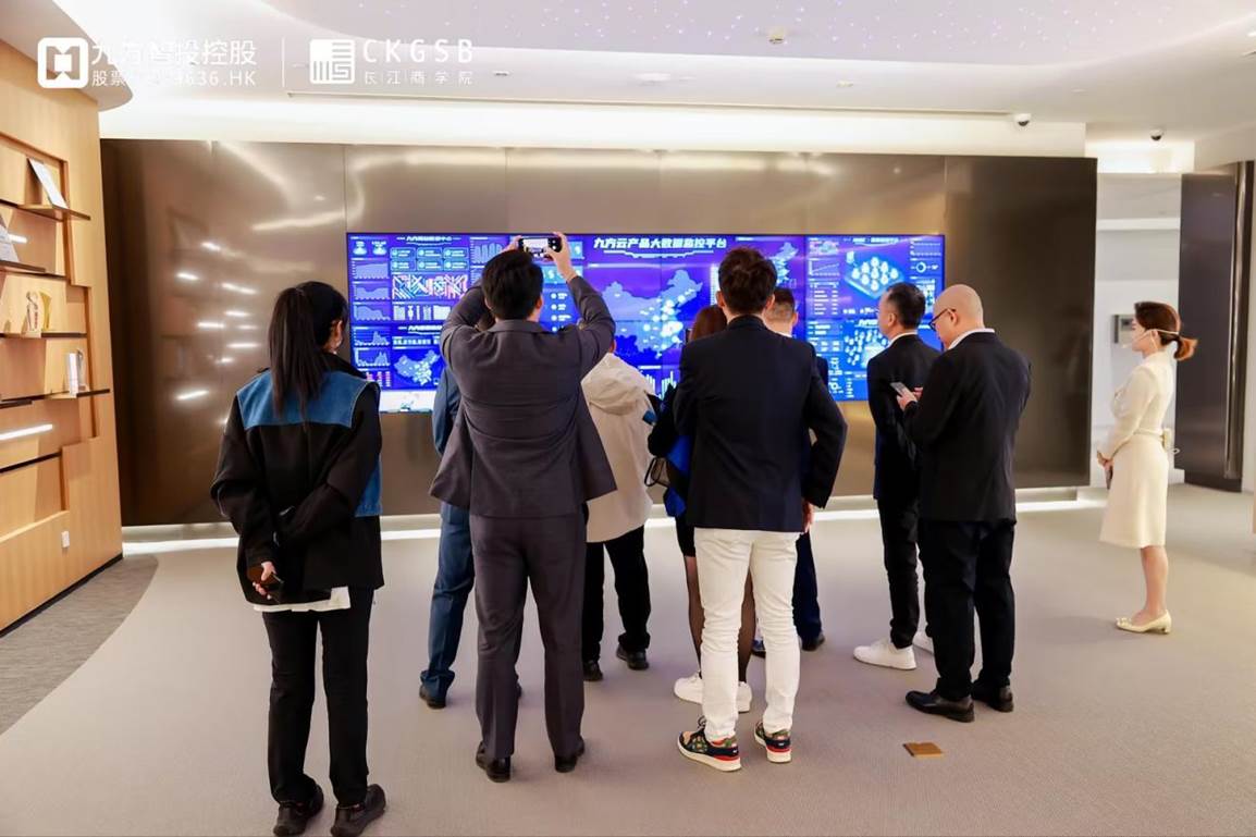 在九方智投控股创始人、董事长兼CEO陈文彬等人陪同下,长江商学院新经济38期1班师生开启了参观之旅。