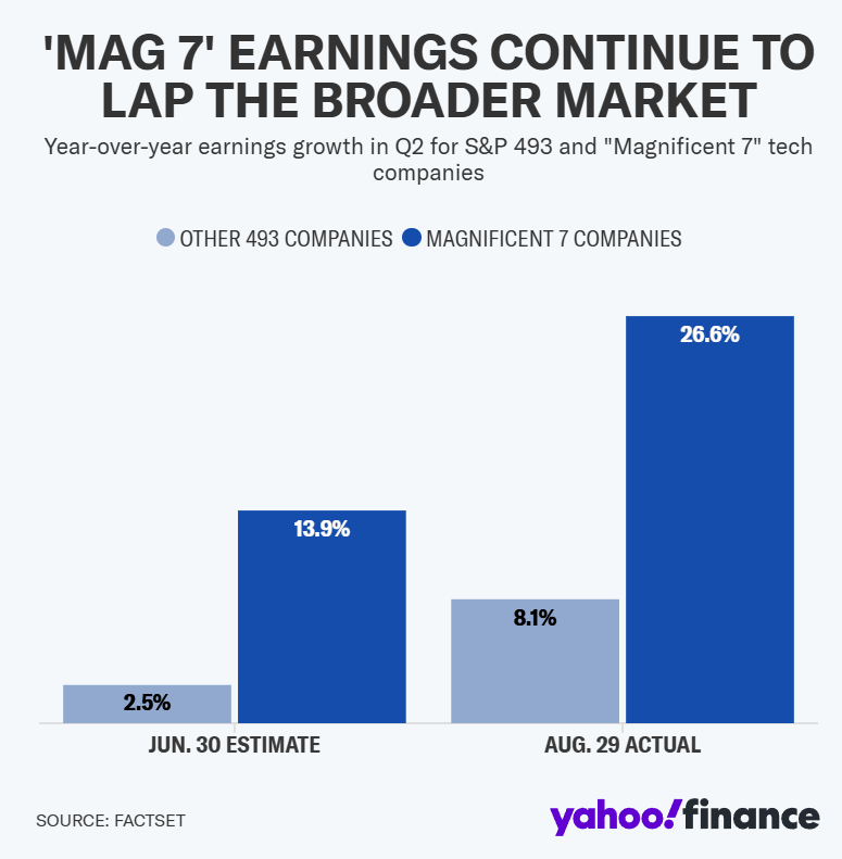 FactSet分析师John Butters上周五发布的数据显示,第二季度“七巨头”的盈利增长率达26.6%,远超标普500指数中其余493家公司同期8.1%的盈利增速。