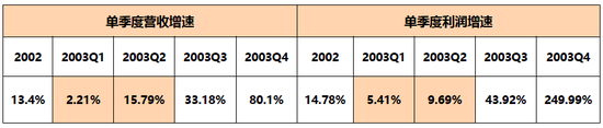 复盘2003年非典期间,茅台一季度二季度业绩明显受影响,较上年有明显下滑。但是三四季度的业绩却快速改善。第三季度、第四季度的营收增速分别高达33.18%、80.1%,而单季度利润增速更是高达43.92%、249.99%。