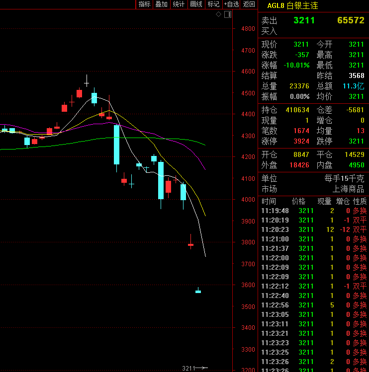 早盘沪银主力合约便直线跌停,近三个交易日来,该主力合约累计跌幅已超过21%。截至午间收盘,沪金主力合约报跌3.53%。