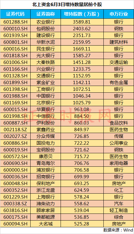 昨日,北向资金净流入额高达44.07亿元,暂时终结了此前持续净流出状态。从盘后增持数据来看,北向资金昨日增持对象主要以银行股为主,农业银行、建设银行、民生银行、光大银行等多只银行股获其净增持超1000万股。