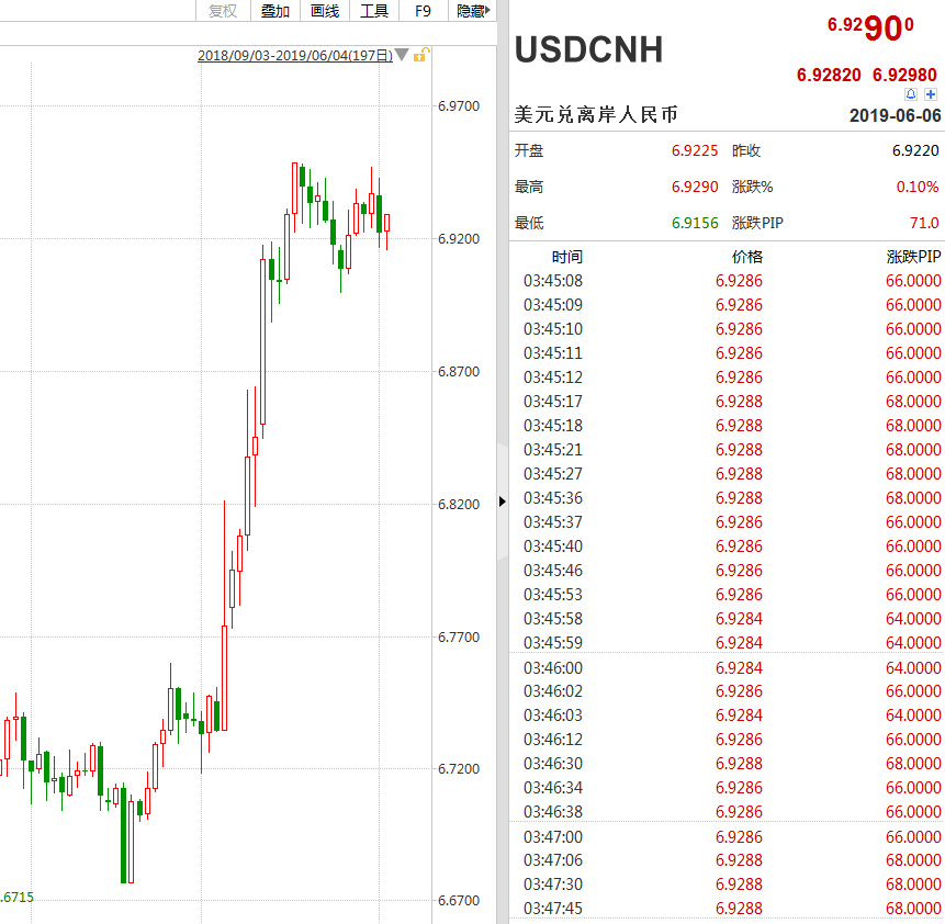 离岸人民币兑美元走势