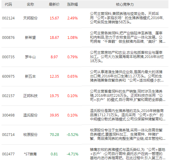 16家猪肉概念股企业,6家半年业绩预计亏损
