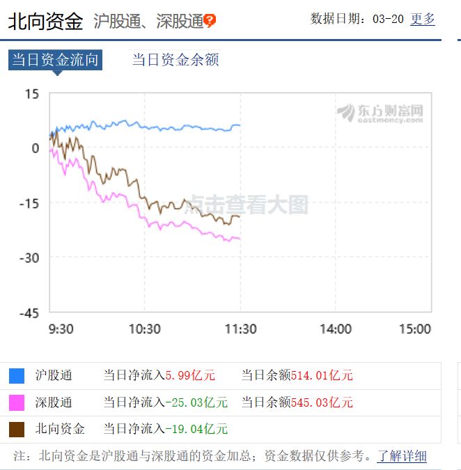 资金流向上,东方财富网数据显示,北向资金净流出趋缓,北向资金半日净流出19.04亿元,其中沪股通资金净流入5.99亿元,深股通资金净流出25.03亿元。