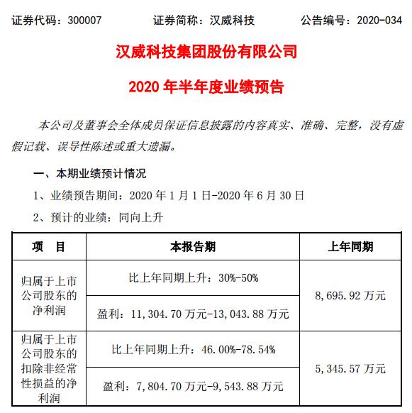 公司在业绩预告中表示,高端智能装备业务是现在及未来公司大力发展的核心主业,预计2020年上半年,公司高端智能装备业务将保持3月份以来的增长势头。