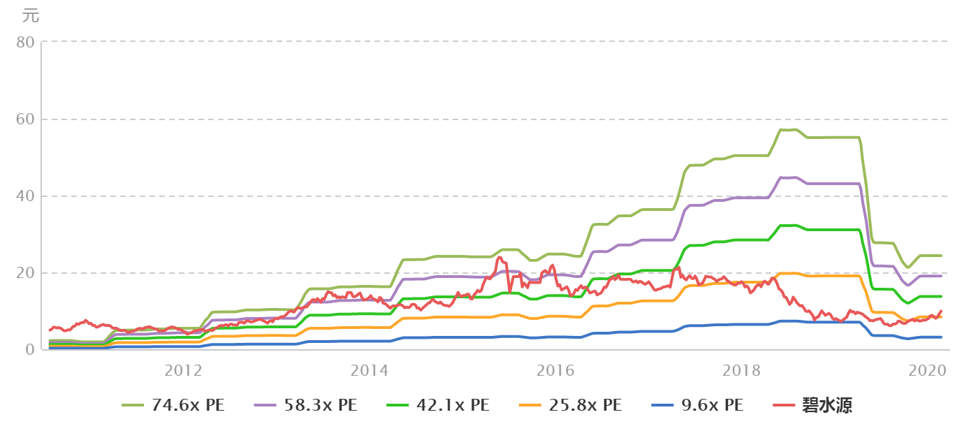 2016-2017 年,PPP 模式大规模应用,行业项目内容及模式均发生重大变化。公司业务随之调整,核心膜法水处理技术应用业务占比下降,低毛利率的外围建设业务增加,项目模式由 EPC 转变为 PPP,投资支出快速增大,且大量 PPP 项目堆积,也积累了非常多的风险。2018 年,资金紧缩环境下,不少环保公司现金流出现危机,公司经营风险也非常严峻,市场对公司的关注度和估值都急剧下滑。公司估值水平在2018年底触底,目前处于逐步复苏的阶段。