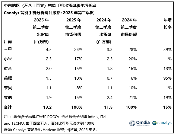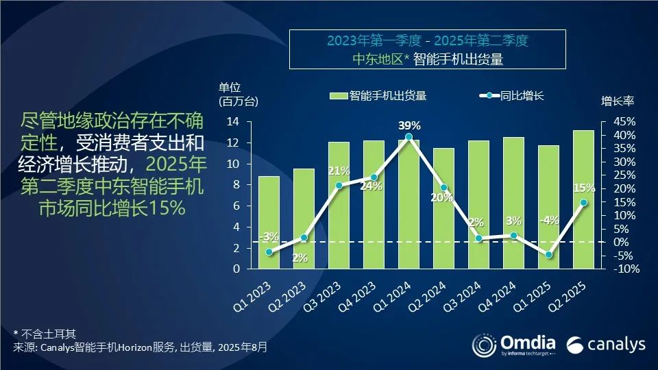 Canalys:2025年第二季度中东智能手机出货量激增15%