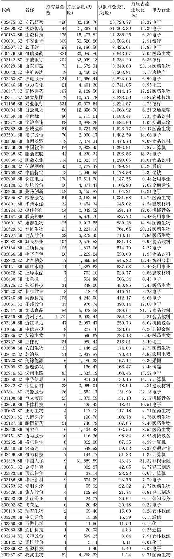 从三季度机构持仓市值增加较多的个股看,也是牛股云集,包括立讯精密、领益智造、生益科技、平安银行、欣旺达、恒瑞医药、宁波银行、山东药玻、中航善达、沪电股份等。