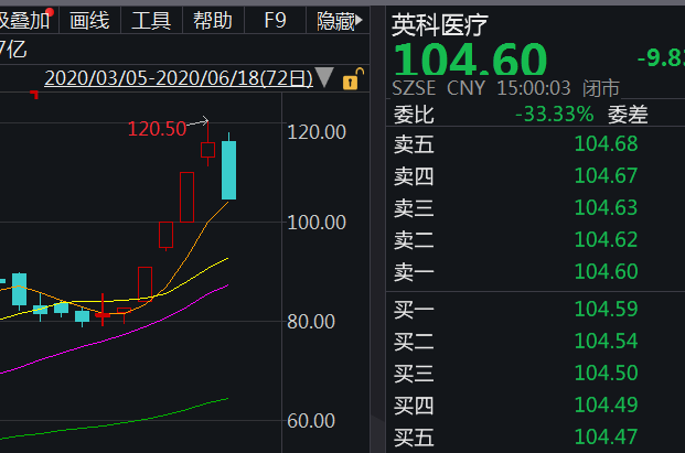 除上述跌停股外,英科医疗、天宇股份、未名医药、华大基因、宝莱特等大热门股今日跌幅均超过8%。以近日被众多投资者热议的英科医疗为例,该股盘中几度跌停,尾盘收跌9.83%。受新冠肺炎疫情影响,国内外防护手套需求激增,作为A股为数不多的医用手套供应商,英科医疗业绩显著向好,一季度公司实现盈利1.29亿元,同比增长281.72%。在疫情爆发后,英科医疗股价走势一路高涨,也由此晋级百元股之列,昨日创下历史高点120.5元。