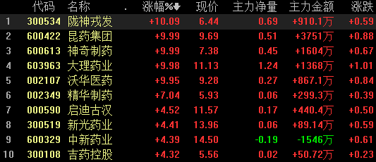 6月17日,医药产业链板块全面爆发,中药、禽流感、化学制药、民营医院、眼科医疗等多个板块涨幅居前,其中,在中药板块之中,陇神戎发、昆药集团、神奇制药、大理药业、沃华医药等个股掀涨停潮。