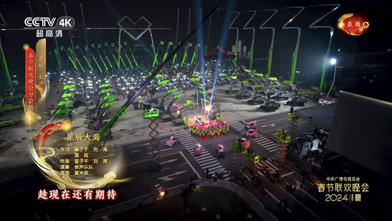 这份责任与情怀,也流淌在每一位中联人的血液里。在2024年央视春晚长沙分会场,中联重科智慧产业城惊艳亮相,数十台机械组成的壮观阵列,与《星辰大海》的歌声交相辉映,展现了中国制造的硬核实力。那句朴实而铿锵的“我们造的!”正是中联人对自身事业、对家乡、对国家最真挚的告白。