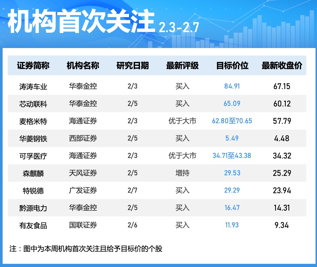 机构本周首次关注37只个股,9股被给予目标价。