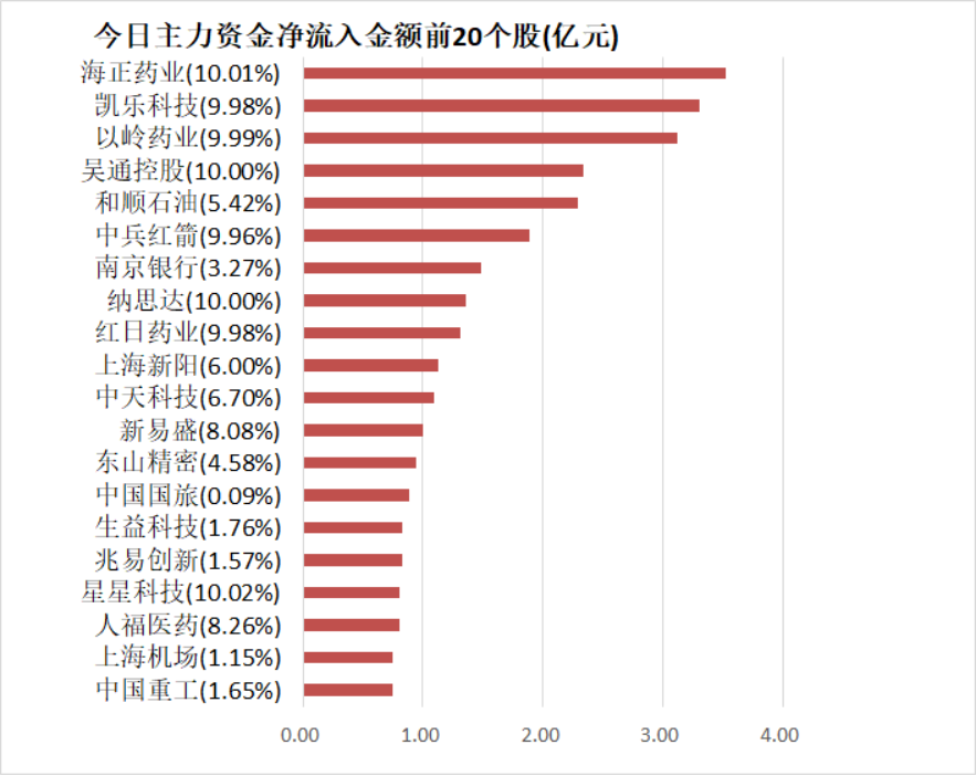 海正药业主力资金净流入3.53亿元居首