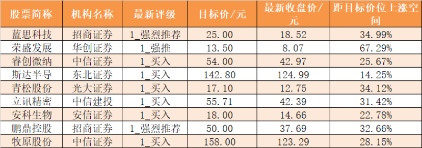 最新机构关注个股