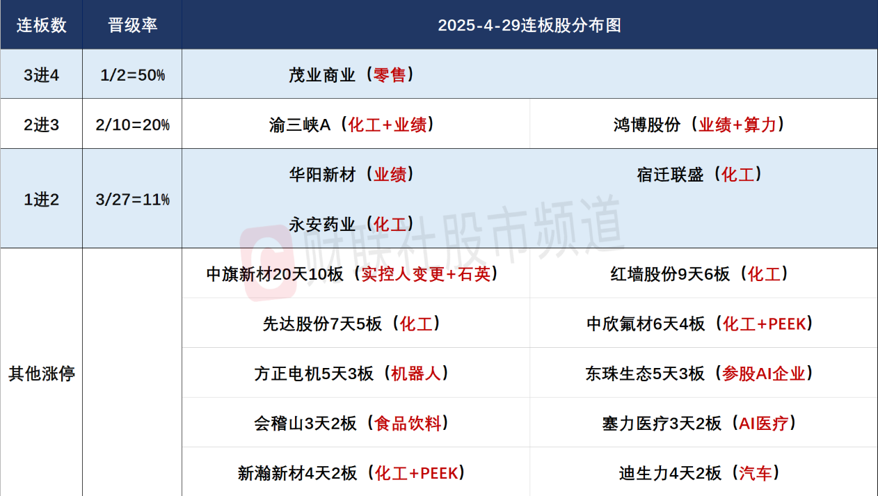 4月29日连板分析:6股连板!化工板块反复活跃