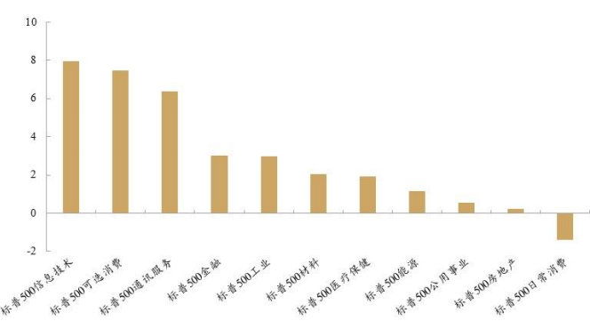 图:4月21日—4月25日标普500不同行业涨跌幅(%)