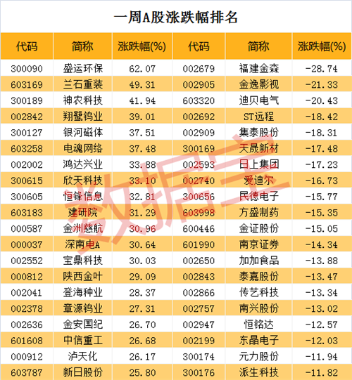 盛运环保问鼎单周涨幅榜