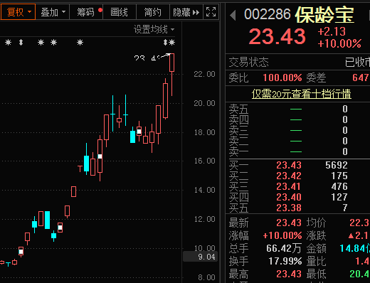 今天尾盘保龄宝再度拉升涨停,收盘价创历史新高,全日成交14.8亿元,自6月份公司股价启动以来,该股已经累计大涨235%。今天收盘后的龙虎榜数据显示,买入金额前5名合计买入总计1.25亿元,占当天总成交金额的10.4%,其中有2家机构专用席位净买入。