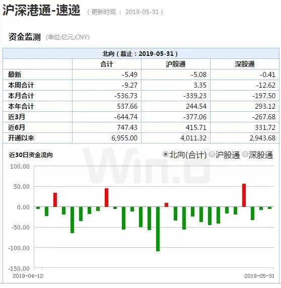 Wind数据显示,北向资金今日净流出5.49亿元;5月仅2日呈净流入态势,全月净流出536.73亿元创历史新高。