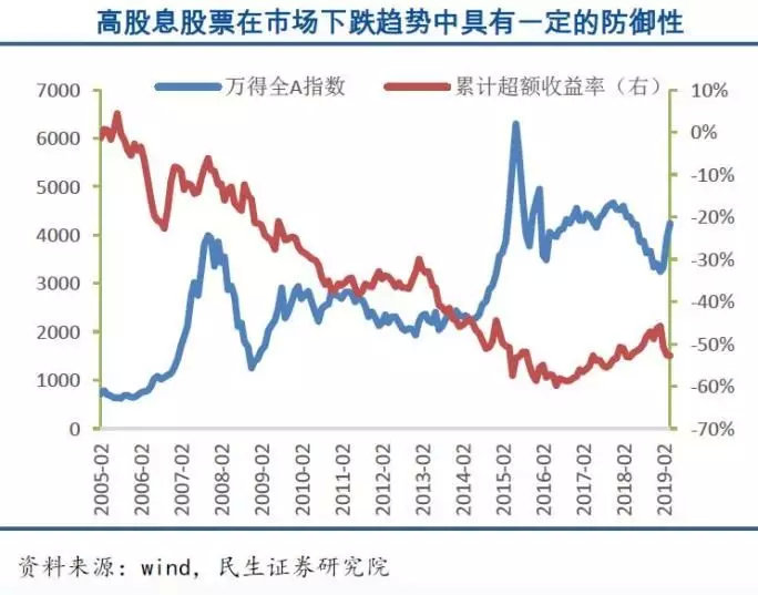 此外高股息个股在市场下跌中具有一定的防御性。随着价值投资理念在A股得到更多认同,高股息股票在市场下跌阶段的防御性逐步增加。