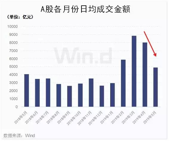 整个5月份,沪指和深成指分别下跌5.84%、7.77%。成交也大幅萎缩, Wind数据显示,5月份A股日均成交额为4900.66亿元,较上月环比减少3124.35亿元,降幅达38.93%。