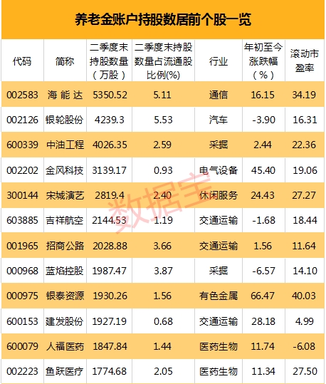 从个股表现看,养老金持股涨多跌少。自7月以来,中牧股份、光弘科技表现较好,涨幅分别为67.38%、57.6%;表现较最差的是伊力特,跌幅为18.03%。
