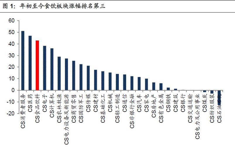 国信证券研报显示,当前行业的整体PE估值为42.3倍,已处于近3年来高位。细分行业来看,白酒估值达38.3倍,啤酒81.6倍,调味品70.6倍,肉制品30.5倍,其他食品64倍。在这种情况下,估值43倍、年内涨幅相对落后的乳业股被推到台前可谓是顺理成章。