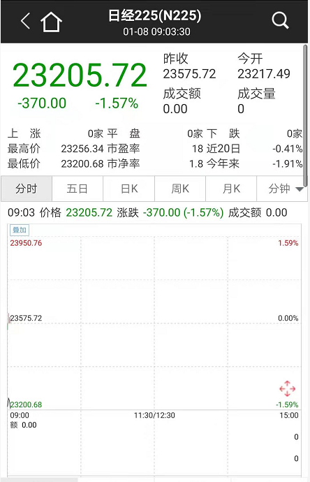 今日早间开盘,日经225指数低开1.8%,报23154.5点。韩国综指跌0.8%,报2159.31点。