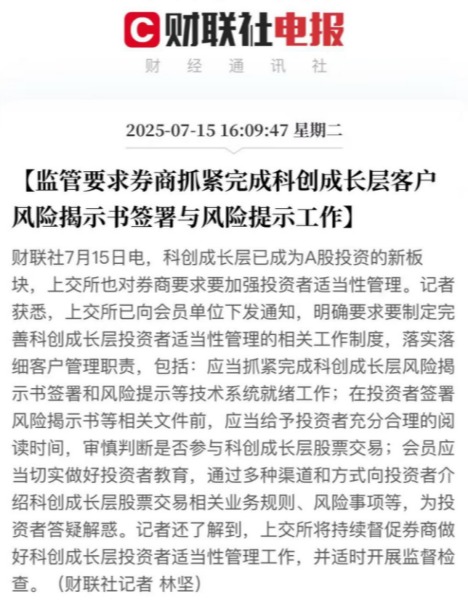 3.上交所将持续督促券商做好科创成长层投资者适当性管理工作,并适时开展监督检查。