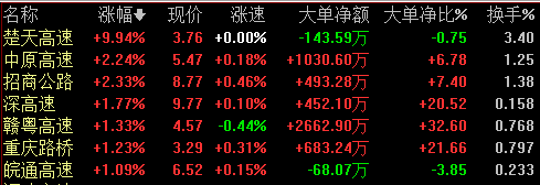 今日午后A股持续上涨,截至目前创业板指涨逾1%,深成指涨0.9%,盘面上,高速公路股午后直线拉升,龙头楚天高速快速封板,中原高速、招商公路、重庆路桥等个股纷纷冲高。