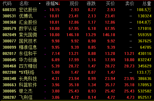 数字货币概念今日盘中大幅走高,截至收盘,宏达股份、优博讯、汇金股份、数字认证、紫光国微、国民技术息等涨停,东信和平、华力创通涨约7%。