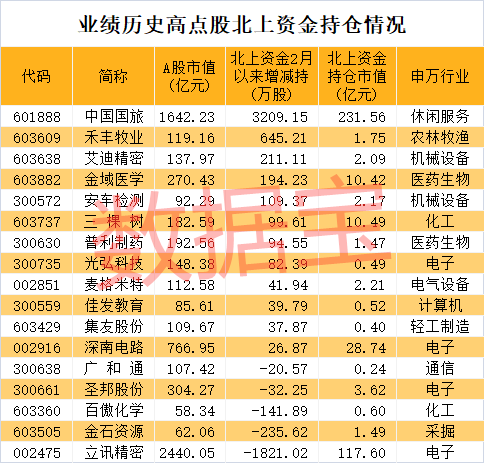 自春节以来,中国国旅、禾丰牧业、艾迪精密、金域医学、安车检测等股获北上资金增持超百万股,其中中国国旅获北上资金增持3209万股,增持股数最高。中国国旅业绩快报显示,公司去年净利润为46.54亿元,同比增长50.38%。