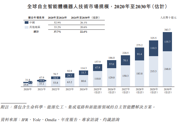 置身其间,相关公司自然大有可为。回看镁伽科技,其所处的细分赛道,在可预见的未来也同样会保持高增长。根据公司招股书,全球自主智能体机器人技术市场的规模由20年的318亿元增加至24年的1143亿元。这其中,中国市场的表现尤其抢眼,期内规模由62亿元跨越式增长至337亿元,对应复合年增长率超过了50%,增速远高于世界其他地区。