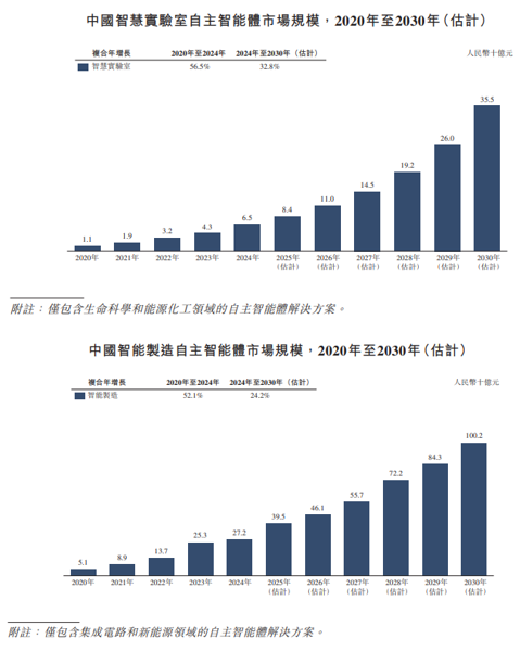 再就国内市场的细分领域看,2024年智慧实验室自主智能体市场及智能制造自主智能体市场的规模分别为65亿元、272亿元,24-30年的对应复合年增长率分别为32.8%及24.2%,潜在增速依然可观。