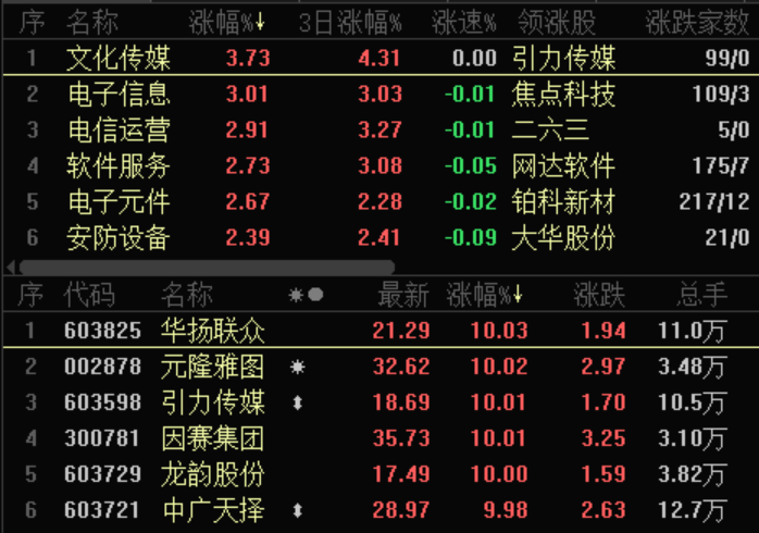网红经济概念股引力传媒最近10个交易日9涨停;黑芝麻近期也连收4个涨停;华扬联众6个交易日4涨停;元隆雅图最近4个交易日3涨停。