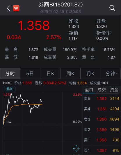 而从跟踪券商板块的分级基金券商B和券商ETF表现看,今日整体涨势也较为明显。截至收盘,券商B上涨2.58%,券商ETF涨幅超1%,均跑赢指数。