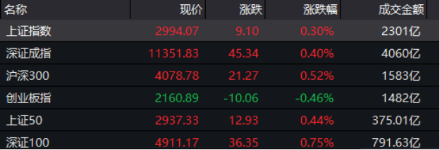2月19日,早盘两市开盘之后出现分化,沪指震荡上攻,截止上午收盘,上证综指报收2994.07点,再次逼近3000点关口。创业板指在刷新前高之后回落,半日下跌0.46%。