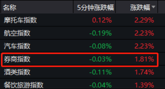 在今天领涨的板块中,被视为“牛市旗手”的券商板块也是主力之一。