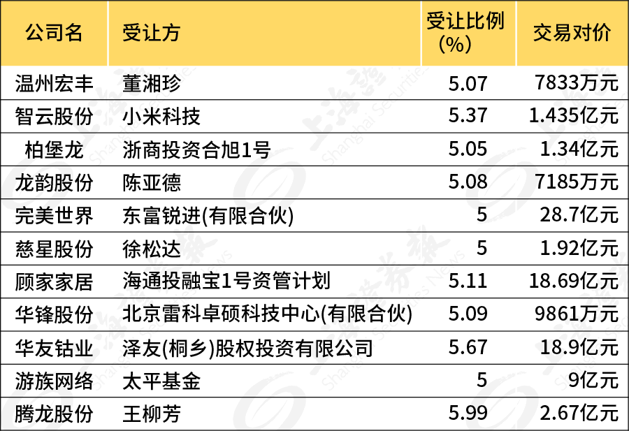 “一次性受让5%股份的对象并不好找。相对而言,知根知底的老乡或是业内的伙伴,达成交易的可能性更高。”市场人士对记者表示,但在过往案例中,也有的受让方仅是代持过桥,或有其他的利益安排。