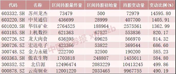从9月以来北向资金的持股变动比例来看,9月以来有137只个股的变动比例超过了100%,获得北向资金的明显增持。变动比例位居前三的苏州龙杰、中贝通讯、华钰矿业的变动比例分别为14595.80%、1405.91%、1362.99%,对苏州龙杰的持股量从500股增加到了7.35万股,对中贝通讯的持股量从2.90万股增加到了43.67万股,对华钰矿业的持股量从18.90万股增加到了276.45万股。
