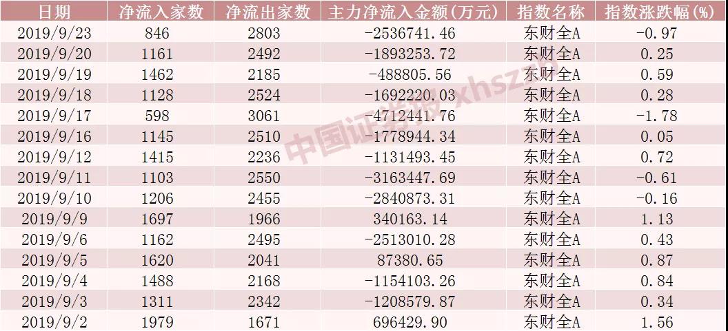 在9月北向资金净流入近600亿元的同时,代表场内资金动向的一个指标—主力资金却显示出现了不断流出。