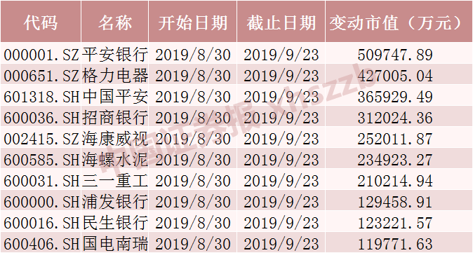 从9月以来北向资金持仓市值变化来看,在9月以来市场上涨和北向资金持续加仓的带动下,北向资金对14只个股的市值增幅超过了10亿元,其中市值增幅位居前三的个股为平安银行、格力电器、中国平安,北向资金的持仓市值分别增加了50.97亿元、42.70亿元、36.59亿元。