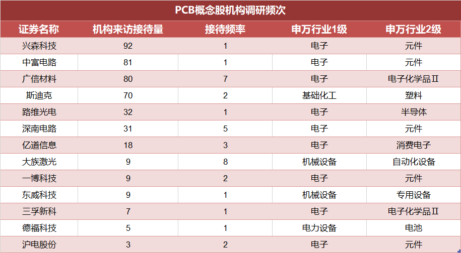 机构密集调研PCB概念股!本月接待量居前热门股名单来了